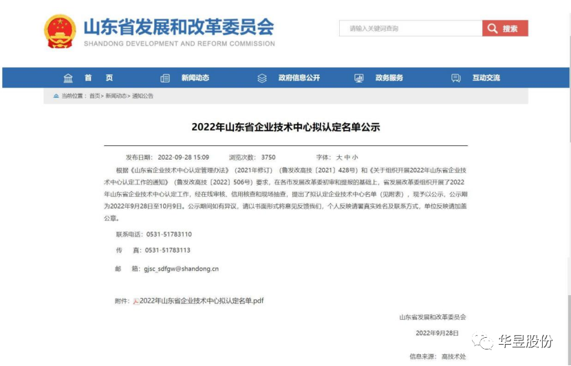 2022年9月28日,山东省发展和改革委员会发布通告,山东华昱压力容器股份有限公司获评“山东省企业技术中心”。