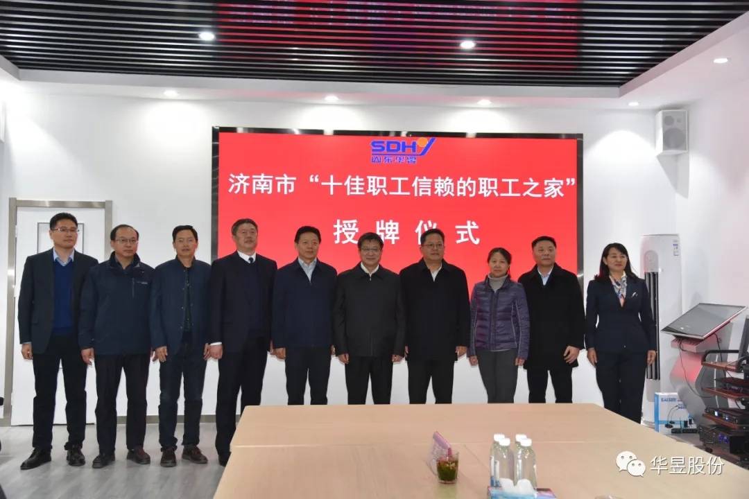 参观后,济南市委常委、市总工会主席雷天太向山东华昱颁发济南市“十佳职工信赖的职工之家”奖牌;济南市总工会党组副书记、常务副主席傅金峰颁发“济南市五一劳动奖状”奖牌。