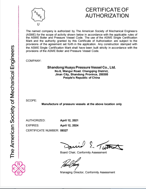 董事长张立新代表公司及全体员工感谢专家组的辛苦工作及提出的宝贵建议,并表示此次公司顺利通过ASME认证,为公司在业务范围拓展奠定了基础,公司将以此为契机,不断提高公司的管理水平,努力提高效率、降低成本、提供更加优质产品和服务,增强顾客满意度,从而为公司不断扩大市场占有率和长远发展提供有力保障。